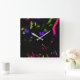 Neon Black Cat with Glowing Eyes Square Wall Clock