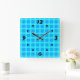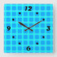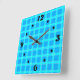 Neon blue bright checked pattern square wall clock