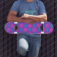 Neon Blue & Pink Chequered Pattern Skateboard