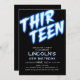 Give your party a major shine with this neon blue 13th birthday invitation for boys. The bold typography and exciting neon effect give this design a fun, masculine vibe. Perfect for your favourite teen boy's birthday or arcade party. Order your printed invitations and party supplies or download your digital invitations now for a day they'll never forget!