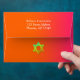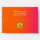 This neon orange, hot pink and black A7 envelope with neon green, purple, and blue flowers and butterflies has a Star of David on the back that matches the Bat Mitzvah invitation shown below. If you require any other matching items in this design, please email your request to niteowlstudio@gmail.com.