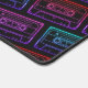 Neon cassette desk mat featuring a retro tape pattern in bold red and pink tones on a dark background. Bright neon hues create a vibrant, nostalgic vibe inspired by 80s and 90s music culture.