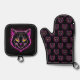 Neon cat oven mitt & pot holder set