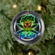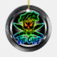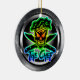 A cool neon outlined chef skull with crossed knives against a metallic-like background. This culinary themed skull chef ornament makes a great gift for those with a fierce passion for cooking.