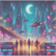 Immerse yourself in the electrifying world with this stunning neon cityscape design. This vibrant and futuristic image captures the essence of the track, featuring towering skyscrapers, flying cars, and retro-futuristic vehicles against a backdrop of neon-lit city lights. A large moon adds a touch of otherworldly mystery to this bustling metropolis. Perfect for fans of synth-wave music, and futuristic aesthetics.