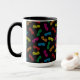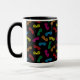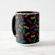 Vector illustration of multi-coloured party glasses in a repeating pattern against a black background.