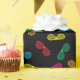 Vector illustration of multi-coloured party glasses in a repeating pattern against a black background.