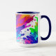 Fun mug with a neon paint splash effect in shades of blue, purple, red, yellow, green, pink, orange and turquoise.