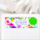 Pretty splashes of paint in shades of blue, red, green, yellow, purple and pink on white background. Personalise with your information. Choose your favourite font and colour. No actual neon glow.