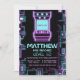 This Neon Colourful Retro Arcade Kid Gamer Birthday design features an arcade machine, joysticks, trophies, gems, crowns, stars, hearts with a computer circuit edge background. This design is perfect for a kid’s video game themed birthday party. This design suits any gender or age. You can customise all the details for your event. See the whole matching collection!
