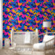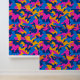 The wallpaper featuring this seamless pattern is a bold and dynamic design that instantly energises any space. The pattern consists of abstract, interlocking shapes in vibrant shades of blue, pink, purple, and yellow, set against a deep navy background. The colours are randomly distributed, creating a lively and non-repetitive visual effect that draws the eye and adds a sense of movement to the room. This wallpaper is perfect for making a statement in any room, whether it’s a modern living area, a creative workspace, or a playful children’s room. The energetic colour scheme and fluid design make it a versatile choice for those looking to add a touch of excitement and personality to their interiors.