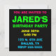 All the text is customisable on this invitation. You can change the font size and placement to fit another name or more address information. Bright colours like neon ... big block letters against a black background. Cool Story, Bro! Tell it again!