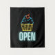 Neon cupcake symbol with neon "Open" text on black background makes this a great design for cute home decor, to advertise a small baking business, or even for a dessert table.