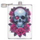 Neon Cyber Death Skull and Roses White Hip Flask