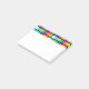 This Post-It notepad has a geometric design of neon diamonds overlapping each other on a field of black.