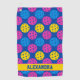 Bold, playful, and totally court-ready, this customisable pickleball towel features a crisp grid of perforated pickleballs in punchy pink, electric yellow, and cool blue, all popping against a deep navy backdrop. A vibrant yellow band anchors the design with your name in bold uppercase pink letters, adding a personal flair that’s as cheeky as your serve. Made from a durable microfiber blend, it’s perfect for wiping down gear or flaunting on the sidelines, complete with a grommet and brass-plated hook for easy attachment. Whether you're dinking, smashing, or just soaking up the sun, this towel says: “I came to play—and slay.”