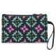 Neon Dragonflies Pink Flower Black Shimmer Pattern Wristlet