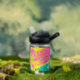 A vibrant burst of electric colours and stencil shapes that dance across the canvas in pure artistic chaos. Features bold magentas, electric yellows, turquoise blues, and deep purples that blend and clash in perfect harmony. Splattered paint textures, spiral motifs, and flowing forms create an energetic piece that captures the essence of creative freedom and artistic expression. Personalise with a name.