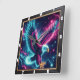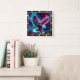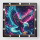 This square wall clock features a striking neon-style image of an eagle with outstretched wings. The vibrant design includes lightning bolts in shades of blue and pink, creating a dynamic and modern look. Perfect for adding a bold and artistic touch to any room, this clock combines functionality with eye-catching style.
