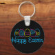 This design features decorated eggs in neon colours of pink, yellow, purple and blue. Happy Easter is printed on the bottom of this design. A black backround is applied to the back. These key chains come in assorted styles.