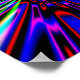 Detail from some bright digital artwork created from a fractal image recreated into an explosion of rainbow of colors that are reminiscent of neon lights against a black background.