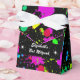 Beautiful favour box with bright neon splashes of paint. Sparkling stars add glitz and glam to this lovely box. Perfect for Bat / Bar Mitzvah, Sweet Sixteen or any celebration. Select your favourite font and colour. Bow can be changed to purple black or pink.