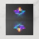 Antique, mechanical firefly with light bulb and thin wings glows orange, purple, turquoise on black background. Steampunk style.