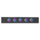 Antique, mechanical firefly with light bulb and thin wings glows orange, purple, turquoise on black background. Steampunk style.