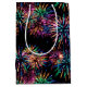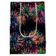 A vibrant and bright neon firework burst pattern on a rich black background.