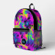Kick off your back to school in style with this funky Neon Flame tie dye backpack. This fun, stylish custom backpack features a very bright and colourful tie dye design on a black background. A monogram initial text template is included - use it to personalise your bag or remove it, the option is yours. This backpack also black colour block strip at the top of the front pocket, complimenting the monogram. Feel free to change these to suit your style!