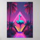 Neon Flamingo Palm Trees Vaporwave Aesthetic Poster