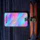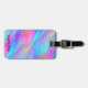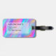 Features an abstract neon design. Personalise with a name on the front, and a name and address on the back.