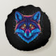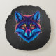 Neon Fox Face – Vibrant Glowing Design Round Cushion