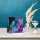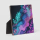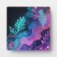 A vibrant abstract composition featuring glowing neon turquoise and purple botanical elements against a dark background. Sparkling glitter textures in pink, gold, and turquoise flow through fluid ink-like shapes in deep blue, purple, and magenta. The luminous leaves and stems create a rich, layered effect with bright bokeh highlights, delivering a bold, modern, and energetic colour palette perfect for contemporary designs.