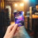 Trendy neon glow in the dark pink blue neo vibrant colourful party lanyard invitation with VIP pass for teens.