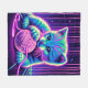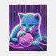 A vibrant neon-style cat playing with a ball of yarn, perfect for cat lovers and fans of glowing, colourful digital art. Ideal for those who love playful felines and cosmic cyberpunk aesthetics.