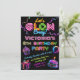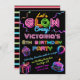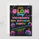 Colourful neon "Glow crazy" birthday party invitations. Features neon fonts, streamer, birthday cake, cupcake, balloon, and present on a black background. Neon coloured bars on the back. The words "Glow and birthday party" cannot be changed but can be deleted. To make more changes go to Personalise this template. On the bottom you’ll see “Want to customise this design even further? Click on the EDIT using Design tool. From there you can change some of the fonts & some colours, move things around or delete what you need.