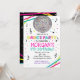 This bright and colourful Neon Glow Dance Party Invitation is perfect for any dance party! Send this invitation for dance theme birthday parties, music theme birthday parties, school dance parties and more. This design features bright, colourful neon confetti, stars, music notes and a colourful disco ball. The bright neon colours work great for glow in the dark parties, neon theme parties, 80's dance parties and more! Also available with a black background.