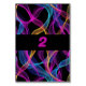 Beautiful neon effect table number cards with bright colourful flowy ribbons in shades of turquoise, green, blue, red, yellow and purple. Perfect for Sweet Sixteen, Paintball, Bat Mitzvah celebrations.