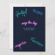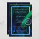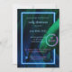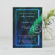A cool neon glow design with dark blue and green bird feathers as a backdrop framed by a neon blue rectangle. Get your grad glow on and celebrate your graduation with your friends and family with this funky invitation. Add your party specifics to the invite, and the back of the card has space for your degree and college. The neon text elements on the back can be arranged to your liking. Class of 2023, dismissed!
