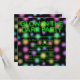 Colourful multi colour glow dots on black and green neon sign glow in the dark birthday party invitation.