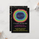 Bright neon colours glow party invitations- Reads Let's Glow Crazy at the top in shades of neon looking marquee lights lettering framed in rainbow neon lights look oval frame. Personalised name of honoree and event below in white. Personalised party information, including RSVP details are in neon pink and neon yellow. Against black background with scattered, gold glitter stars. Back has matching black background and gold, starry pattern. Use the Customise button to customise any of the text colours, styles or placement. Note: All images are printed. Not actual neon or glitter. Fun birthday party invites, whether you're turning 5 or sweet sixteen. Ready to be personalised with your own glow in the dark party details.