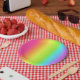 Pink rainbow party plates, great for a girl's neon glow party, dance or roller skating party