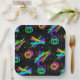 A pattern of scattered glow sticks and bracelets in an array of bright neon colours adds a fun element to this paper plate design for any special occasion. This paper plate coordinates with our personalised Sweet 16 invites and party supplies listed under ID760. Search ID923 to see other products with this colourful design.