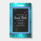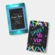 Scattered glow sticks in an array of bright neon colours border top an bottom of this fun Sweet 16 birthday badge invitation. The back has a disco ball texture in shades of neon turquoise. Use the provided template to customise your event details. Search ID760 to see other products in this Sweet Sixteen collection.