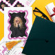 Front and centre, your graduate steals the spotlight with a large, captivating photo framed by a neon glowing wavy border. Their name and the class of the year shine brightly, making a bold statement against the sleek white backdrop.