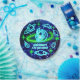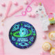 Outer space astronaut boys' birthday design in bright neon glowing blue and green.