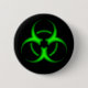 Black button pin with a bright green biohazard symbol.