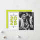 Happy 2025! Send your New Year wishes to family and friends with this customisable Happy New Year card. It features neon green geometric typography and triangle confetti accents. Personalise this New Year card by adding your details. This photo New Year card is available in other colours and cardstocks.