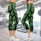 This Capri Leggings feature luminous neon green leaves on black, fractal art. Modern Capri Leggings for any woman!